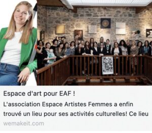 Notre association Espace Artistes Femmes fondée par Marie Bagi a enfin trouvé un lieu pour ses activités culturelles et lance un crowdfunding pour son financement! Ce lieu sera dédié aux artistes femmes et contribuera activement à leur visibilité dans le monde de l’art.